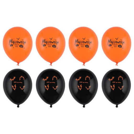 FestiLuonnonkumista (lateksi) valmistetut ilmapallot Halloween-teemalla. Pakkauksessa mustia palloja lepakkokuvioinnilla ja oransseja palloja halloween...