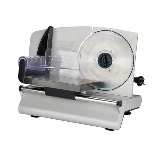 PregoTehokas siivutuskone leikkeleelle, leivälle sekä lihalle. Säädettävä paksuus 1-15mm, terä 190mm, runko aluminiumia, teho 200W. Jaloissa tehokkaat i...