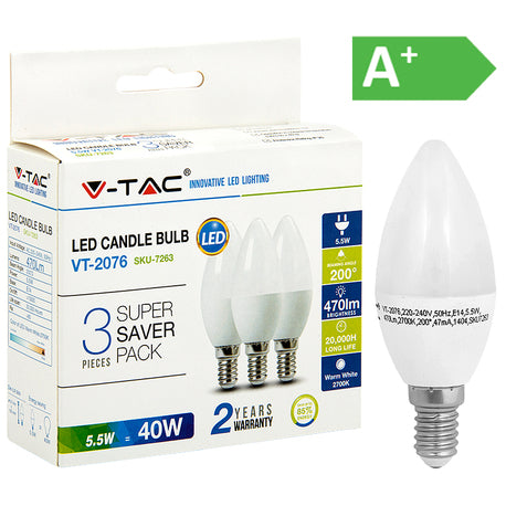 LED-POLTTIMO 5,5W E14 2700K 470LM CANDLE 3-PACK
